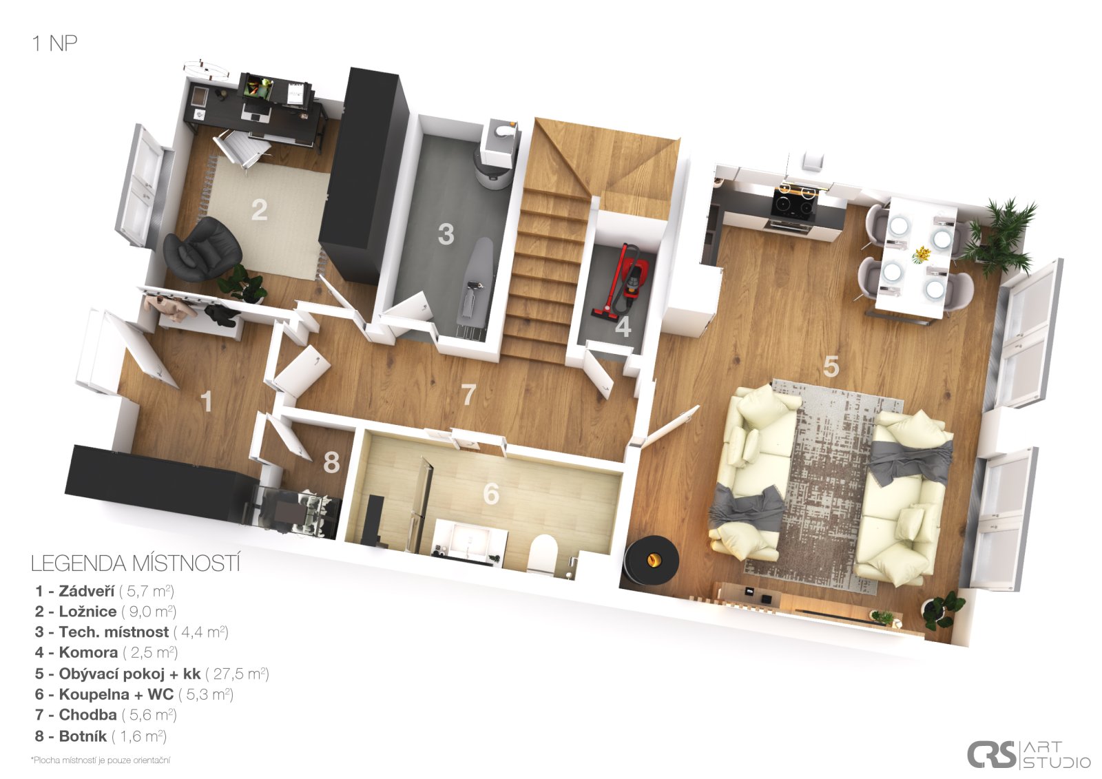 s velkou šatnou, která usnadňuje každodenní chod domácnosti a poskytuje