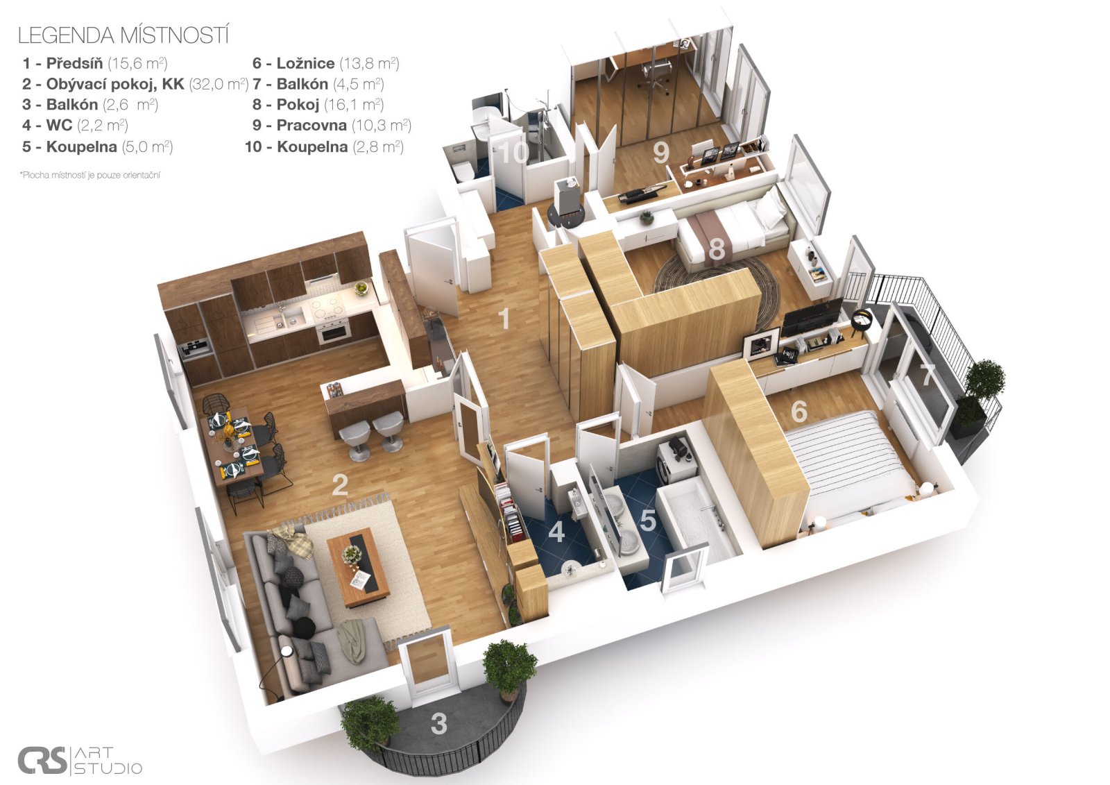 balkon (2,6 m²) nabízí příjemné místo pro relaxaci.