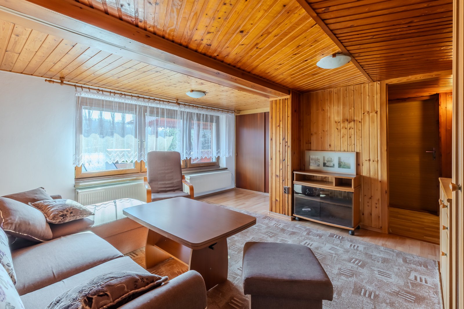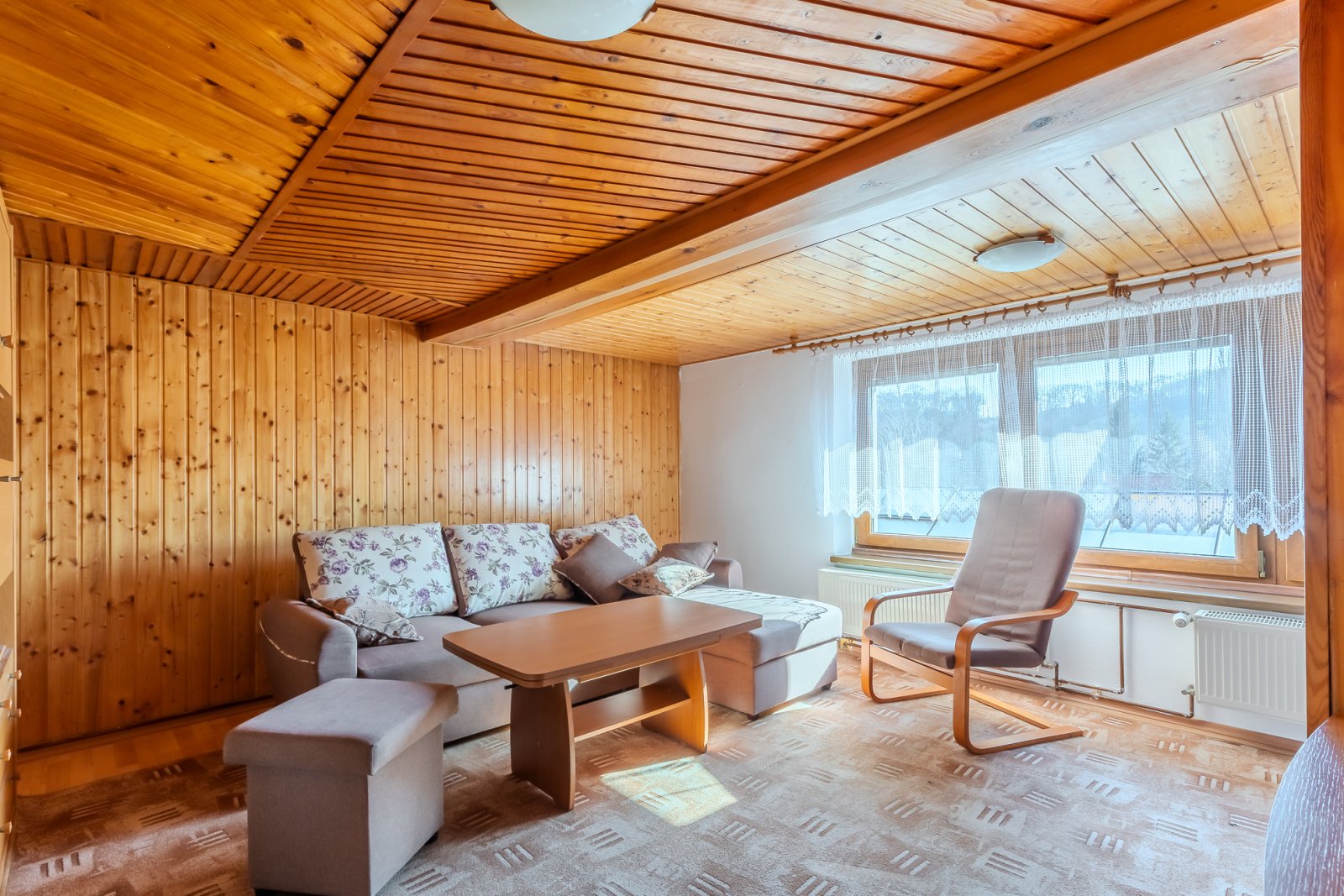 Obývací pokoj (18,55 m²) je orientovaný na jih a je tak příjemně