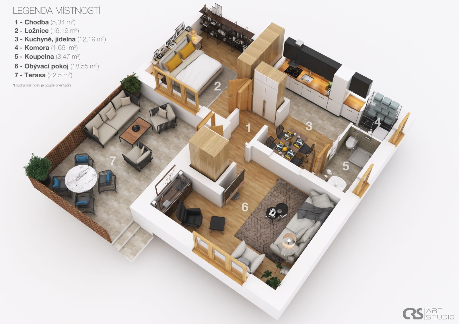 doplněna komorou (1,66 m²), která poskytuje praktický úložný prostor.