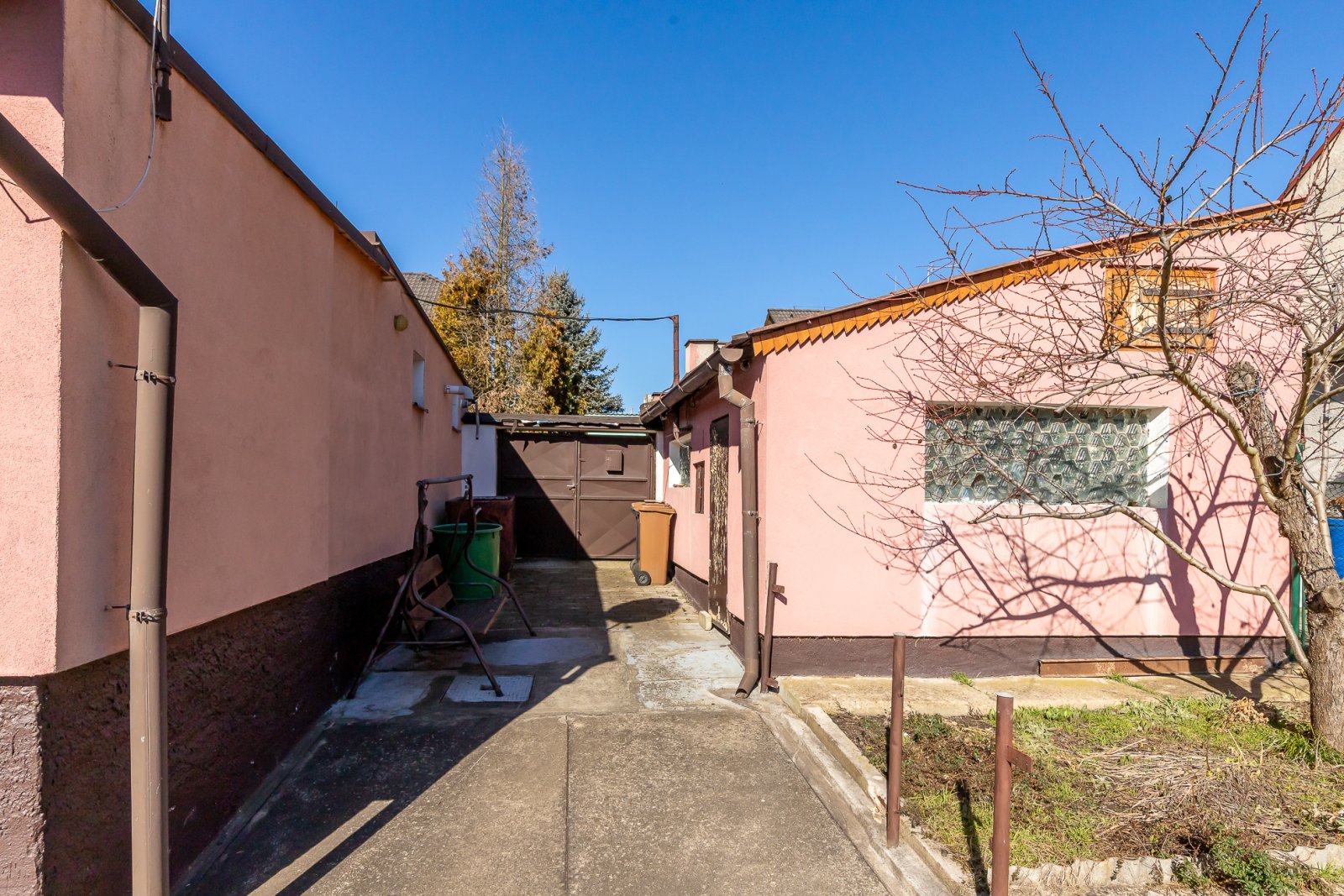 vjezd na pozemek a vlastní garáž.